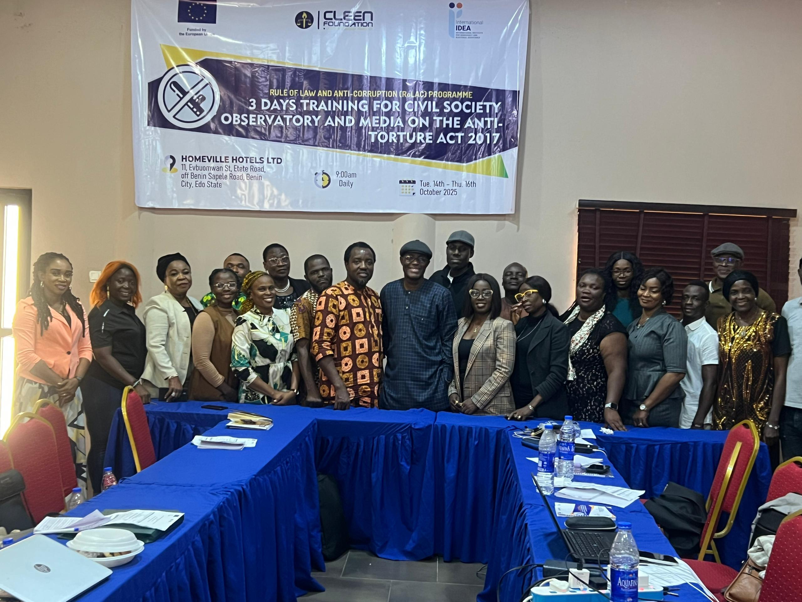 At the end of the three days training programme, participants called for increased public sensitization of the Act and full domestication of the Anti Torture Act Law in Edo State.